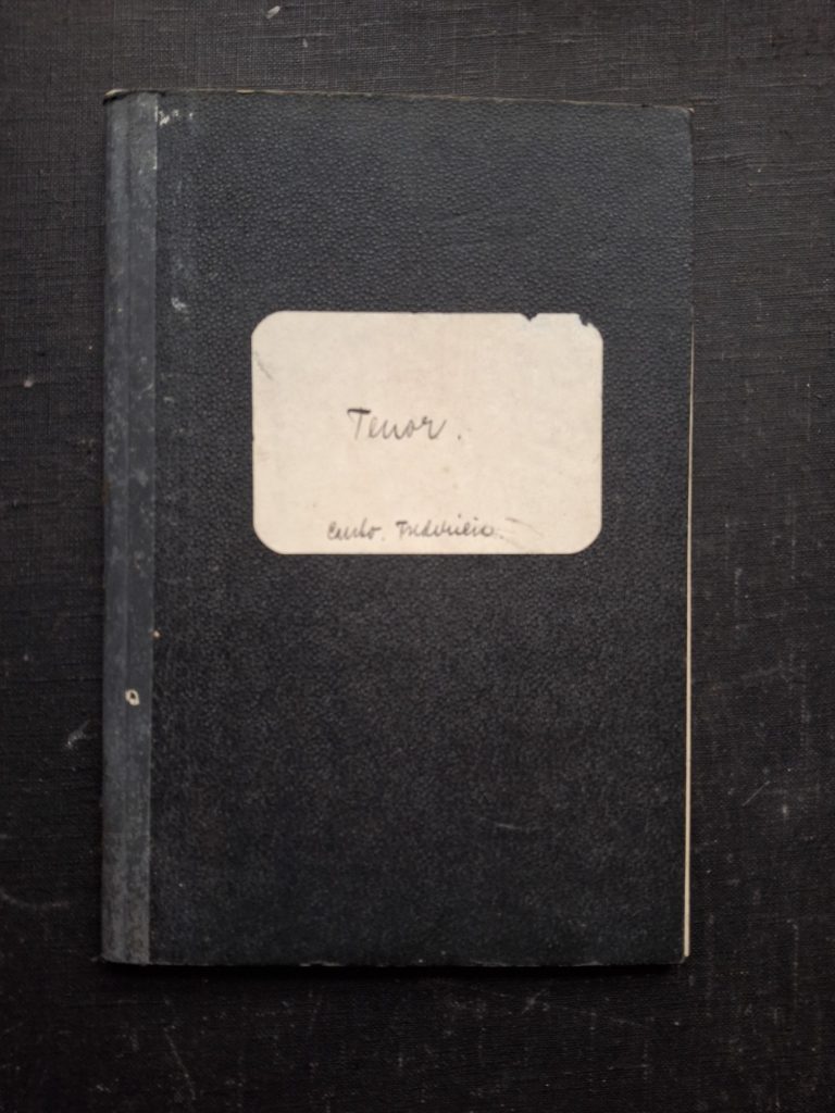 Janus fandt den storslåede bogføringsjournalen til mig, og en anden gang kom han hjem med en gammel nodebog, som ikke er helt udfyldt. De to bøger har samme alder, er fundet i samme by og har indførsler lavet med blæk. For at binde det sammen gik jeg straks i gang med at tegne spætmejsen i nodebogen, men jeg lavede en fejl som var uoprettelig. At rykke siden ud af bogen er ikke en mulighed. Fejl kan sløres på andre måder, og sådan kom et lille uddrag af Cloudbusting med i min logbog.